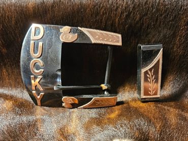 All buckles are fabricated from ¼ inch steel whether you're interested in our ranger belt buckles or a more classic style buckle to ensure the strength and integrity of each one. Every buckle is fully customizable. We offer a wide variety of options from silver and copper inlay, to silver, copper and bronze overlay. Whether you’d like your brand, florals, scrolls or something completely different, we can bring your ideas to life!