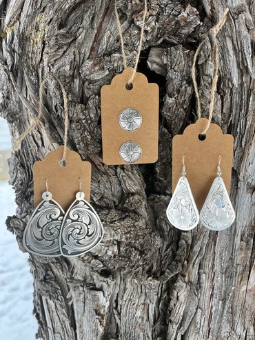 Whether you’re looking for a cattle tag pendant, a bit shank necklace, concho earrings, or anything in between, we can bring your ideas to life! We offer a wide variety of options from silver and copper inlay, to silver, copper and bronze overlay on all of our jewelry.